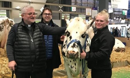 Mgr Cador s'est rendu au salon de l'agriculture dimanche 25 février. Il a assisté à l'inauguration du stand de la Manche et au concours de la vache normande.