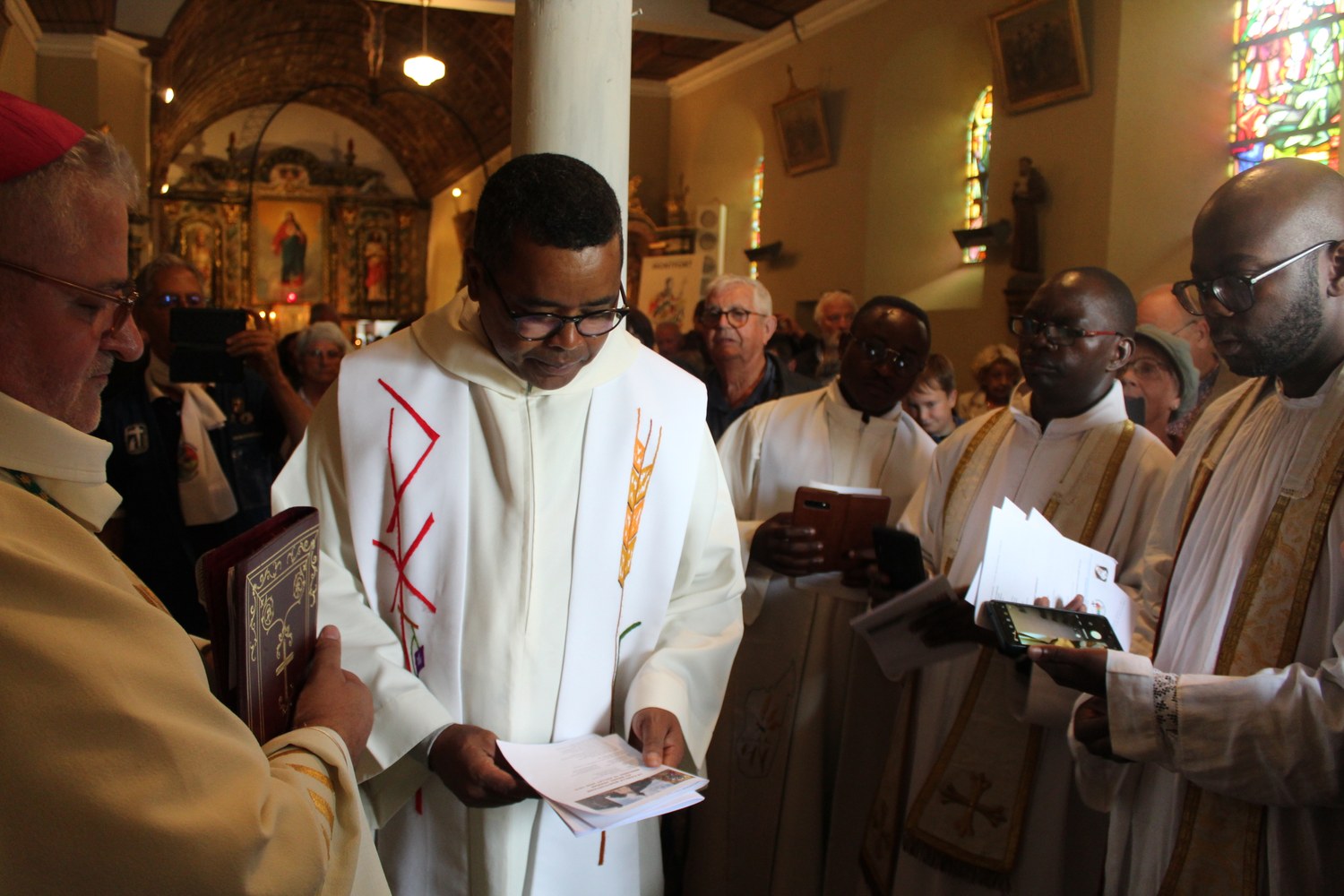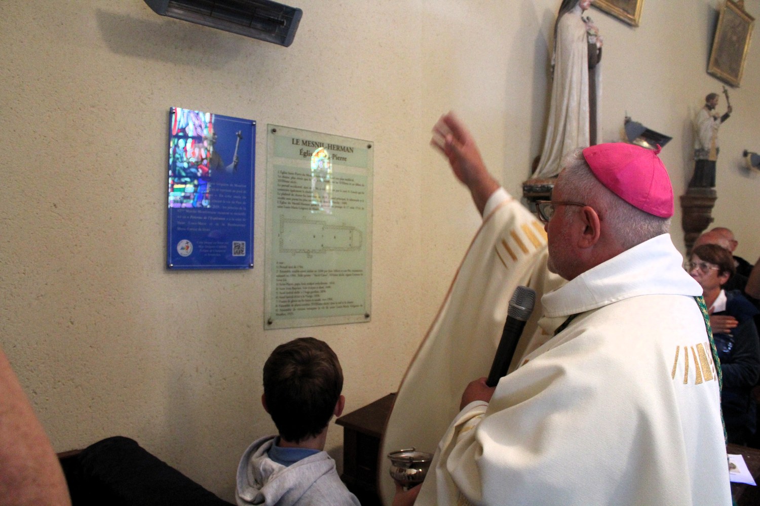 Ce 17 Juillet 2025, une soixante de pèlerins montfortains ont fait étape au Mesnil-Harman, sur les pas de Saint Louis Marie Grignion de Montfort et de la bienheureuse Marie-Louise de Jésus. Au programme : célébration, bénédiction d'une plaque commémorative par Mgr Cador et repas fraternel avant de reprendre la route.