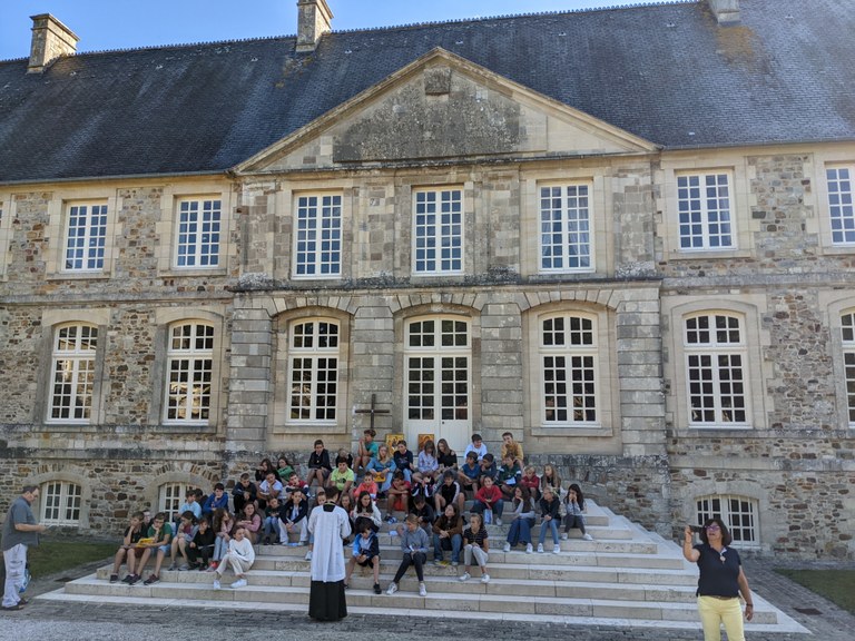 En cette fin août 2022, l'abbaye de Saint-Sauveur-le-Vicomte résonne de cris et de chants. Plus de 50 jeunes de 6ème des collèges publics de Montmartin-sur-Mer, Agon-Coutainville, Saint-Sauveur-Village et de Coutances, sans oublier ceux du collège Jean-Paul II de Coutances sont présents durant 3 jours pour leur retraite de Profession de foi. Temps d'échange et de travail en petits groupes, jeux, bricolage, temps de prière, veillées à thème et moments de détente ponctuent les journées. Samedi 27 août, tous les parents partageaient un grand repas après avoir visité l'abbaye, accueillis et guidés par des religieuses de la communauté. L'eucharistie, célébrée par l'abbé Stanislas Briard clôtura ces belles journées.