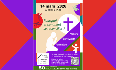 Ateliers pour tous les âges – Possibilité de recevoir le Sacrement du Pardon. Au coeur du carême, un temps pour vivre et célébrer la réconciliation !