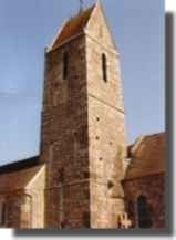 A la suite a été bâti le clocher à bâtière typique du Cotentin, sa base ouverte sur le choeur par une arcade. Il comporte une fenêtre ogivale sur chaque face au niveau des cloches. En 1755, le choeur de l'église tombait en ruines, il fallut le restaurer.