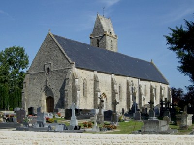 Le vocable de Saint-Eloi, ministre de Dagobert, saint dynastique par excellence des rois mérovingiens, est un autre indice de l'ancienneté de cette paroisse. Le mur sud du chœur conserve, enfin, une inscription funéraire appartenant à un certain Hermer, prêtre, et son épouse supposée, Frule, pouvant remonter au VIIe ou VIIIe siècle. L'édifice actuel a été entièrement reconstruit à des époques postérieures. Le chœur à chevet plat de trois travées, avec ses fenêtres à meneaux bifurqués en Y et son voûtement sur croisées d'ogives reliées par une lierne et retombant sur des faisceaux de colonnettes, offre un bel exemple du style gothique normand du XIIIe siècle.
