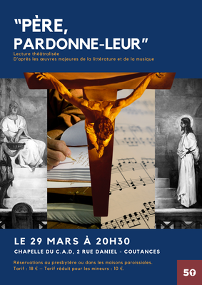 LE 29 MARS 2025, 20H30 à la chapelle du C.A.D (centre d'accueil diocésain), aussi désignée sur certaines applications comme chapelle du Séminaire, 2 rue Daniel, à Coutances