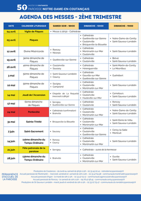 et, enfin, l'agenda des messes des paroisses du Coutançais jusqu' au 28 juin 2026