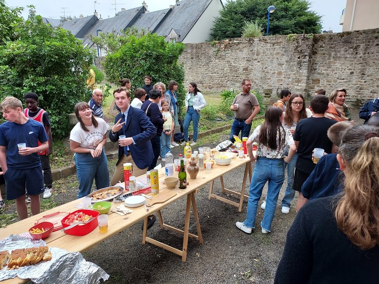 Se retrouver jeunes de l'aumônerie et parents autour d'un apéritif dînatoire.