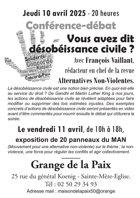 - Conférence-débat "La désobéissance civile" par François VAILLANT du M.A.N.