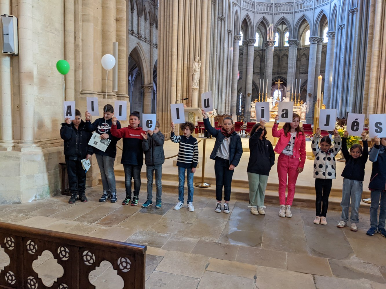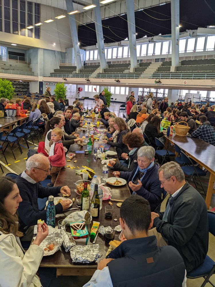 Dimanche 24 avril, après la messe à Hauteville-sur-Mer, enfants, jeunes et parents se retrouvaient pour un pique-nique, suivi dans l'après-midi de jeux, balade en calèche, exposition, danse… Un temps d'action de grâce clôturait la journée à la cathédrale.