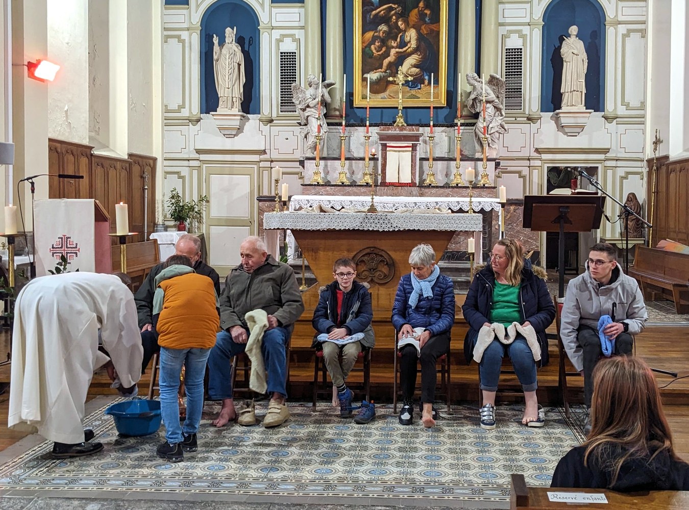 La célébration du Jeudi Saint a rassemblé la communauté autour du père Jean-Pascal, de notre diacre Jean-Marc, des enfants du Kt, leurs parents et leurs animatrices, des jeunes de l'aumônerie dont Noé, futur confirmand.