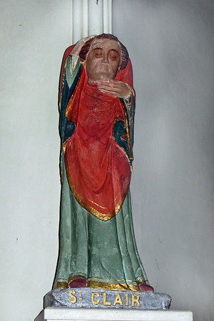 Des statues existent à Guilberville (XIVe s.), Quettreville-sur-Sienne, Querqueville et à Moyon (XVIIIe s.), tandis que Le Lorey possède un reliquaire du saint. Il laisse son nom à de nombreux lieux et monuments du département de la Manche : l'ancienne église de Donville-les-Bains est placée sont son vocable, des chapelles lui sont dédiées à Nacqueville (disparue après la Révolution), Éroudeville, Rauville-la-Place (XVIe s.), Rémilly et Saint-Hilaire-du-Harcouët (chapelle du monastère de Saint-Joseph) ; Le Theil et Saint-Malo-de-la-Lande ont chacune une fontaine de dévotion ; on retrouve le non du saint dans Saint-Clair-sur-Elle, ainsi que pour le marais Saint-Clair (Marchésieux), La Rue Saint-Clair (Montebourg), le village Saint-Clair (Rauville-la-Place), la ferme Saint-Clair (Villiers-Fossard), la Cour Saint-Clair (Reigneville-Bocage), le hameau Saint-Clair (Varouville), la butte Saint-Clair (le Mesnil-Vigot)...